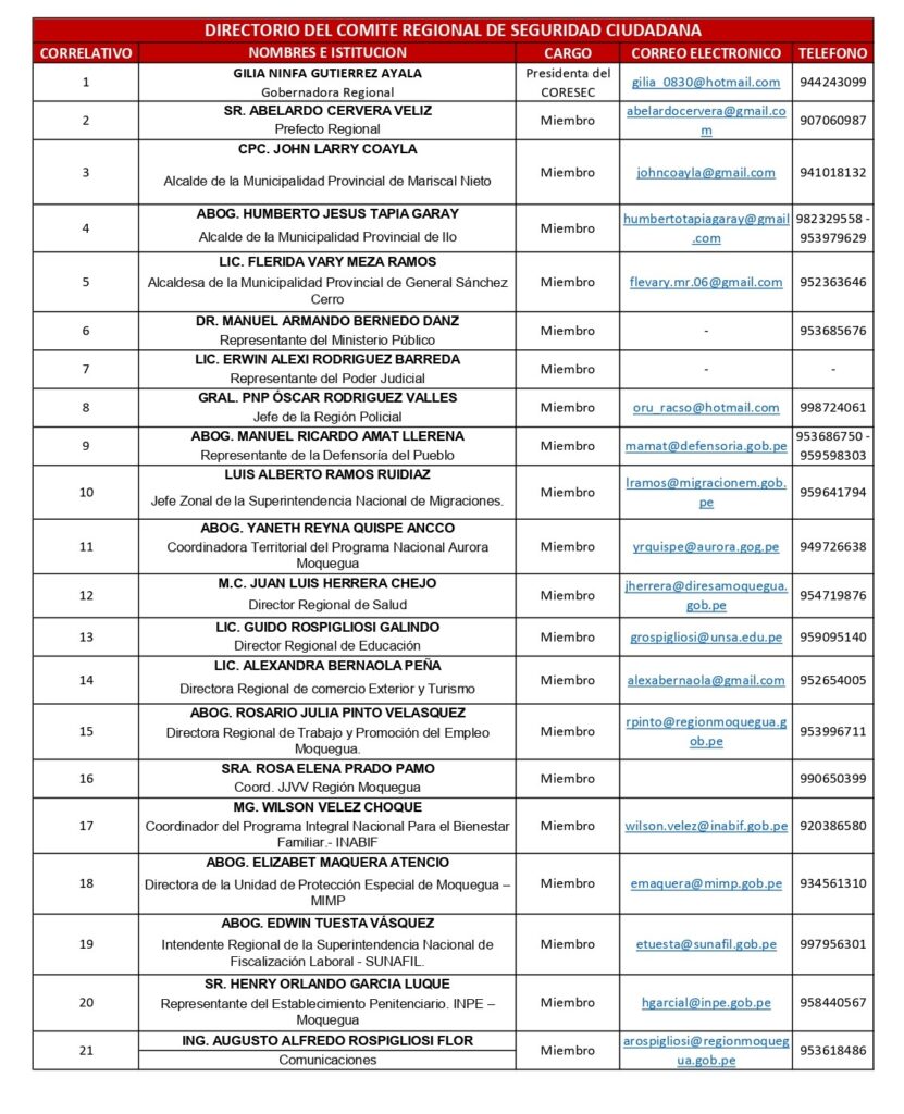 Comité Regional de Seguridad Ciudadana - Moquegua